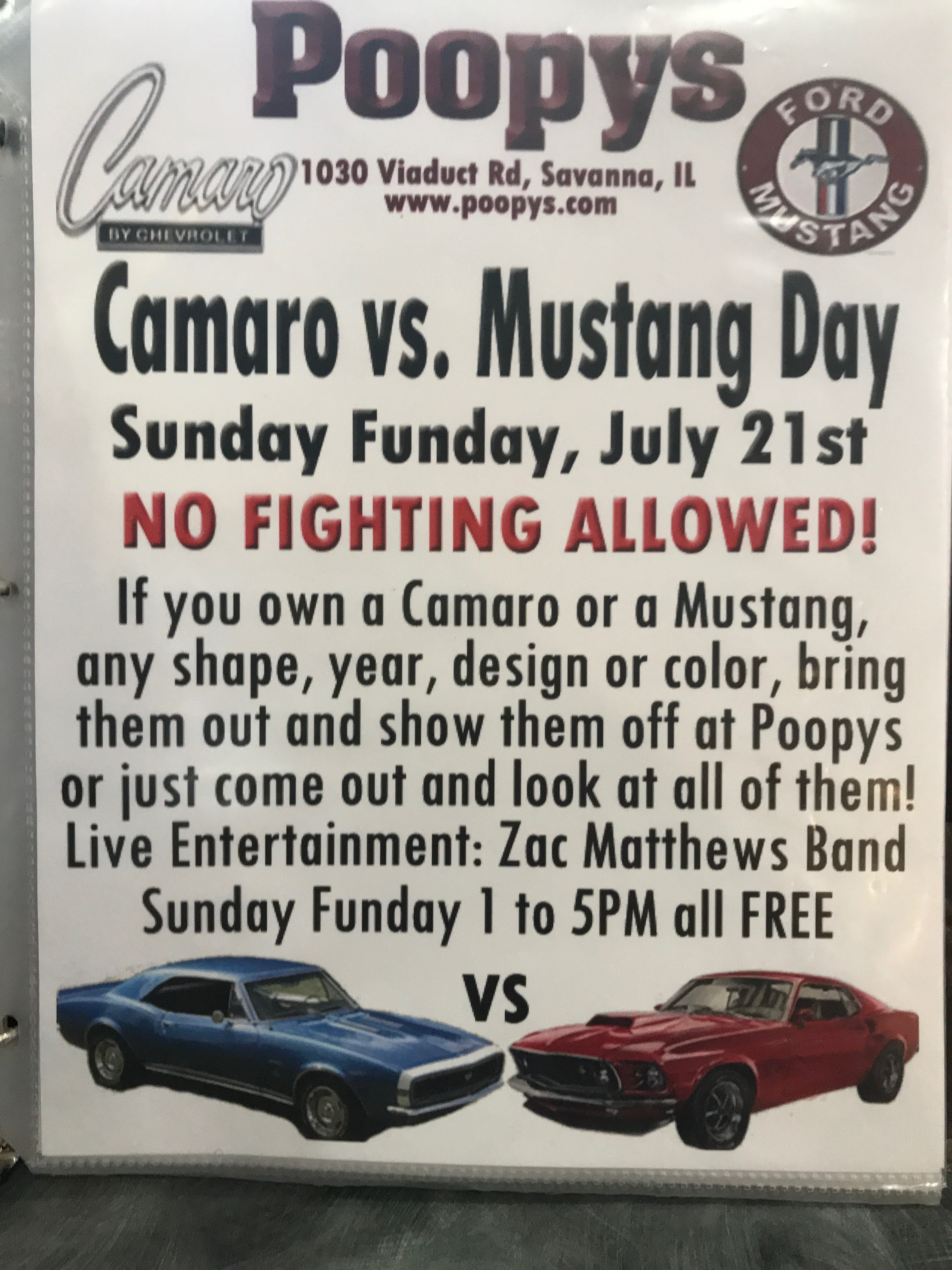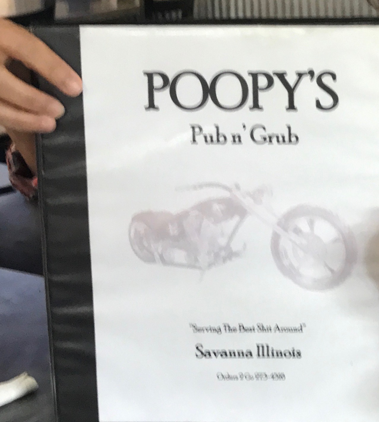 As we neared Savanna, we stopped into the memorable Poopy’s restaurant and bar for dinner. The menu says it all — “Serving The Best Shit Around.” It was actually a lot of fun and the burgers and fries were good, as promised. It’s a huge place and is a big draw for motorcycle enthusiasts with lots of live music and fun events as shown in the flyer.