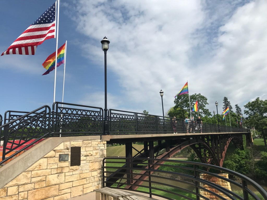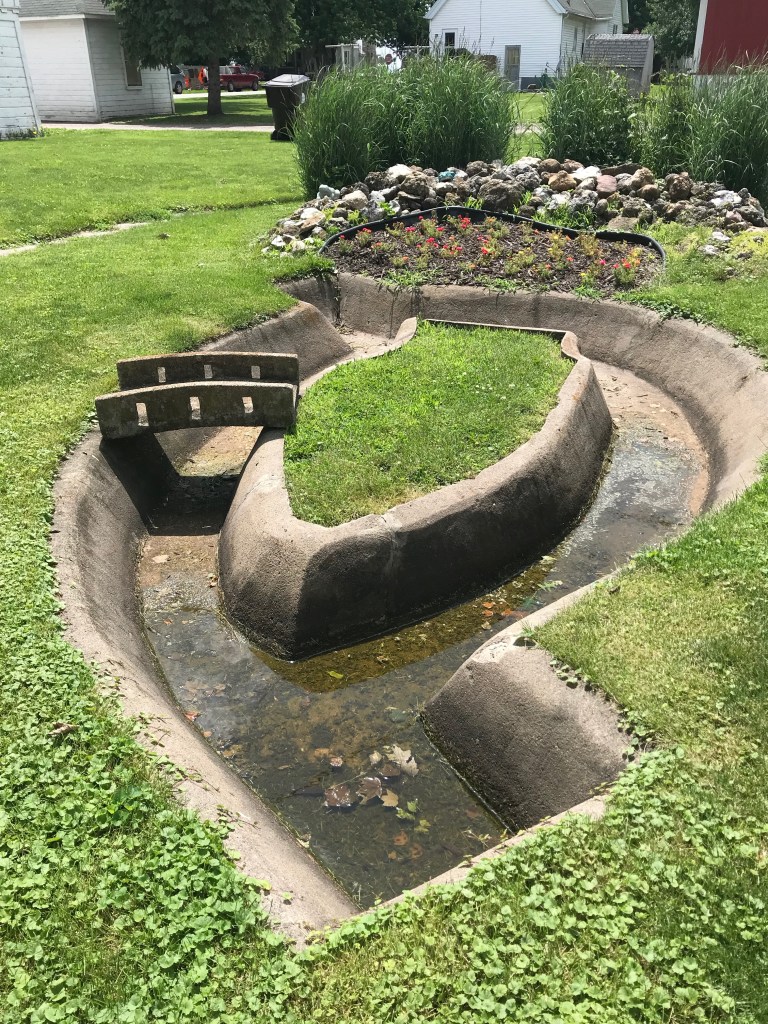 Later that day, we drove a bit out of the downtown area to a couple of areas where my dad spent time as a teen a la Stand By Me (without the dead body.) We drove to Lookout Point in Palisades State Park where I took this panoramic picture of the great Mississippi River. On the far left, you can see a bridge that connects Savanna with Iowa’s only island city of Sabula. The bridge, named the Dale Gardner Veterans Memorial Bridge in honor of Dale Gardner, a Savanna-born NASA astronaut, opened in 2018 and replaced the original 1932 bridge. At the opening of the park there’s a fresh water spring where my dad and his friends used to drink from on hot days, not sure I’d do that today… Along that same road, we stopped at a multi-purpose park where my dad and gang used to spend a lot of time. It had a carousel, ball games, snack bar and a pavilion where thy used to run under in the rain. Today, it’s a multi-purpose park with ball fields and lots of grassy areas for kids to play.